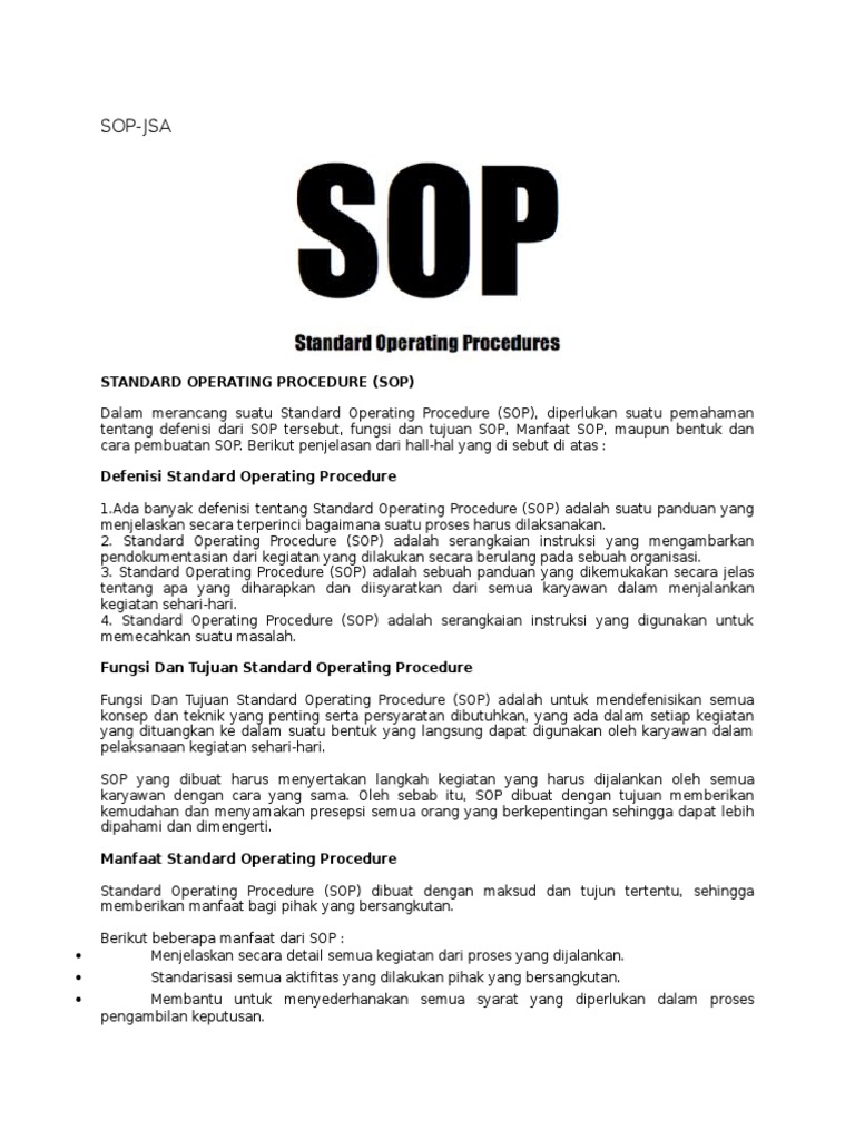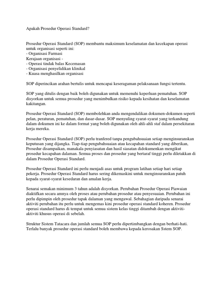 Related : Maksud Standard Operating Procedure - Sops are often created to provide specific steps when activities include known hazards that could inflict loss of property or injury..