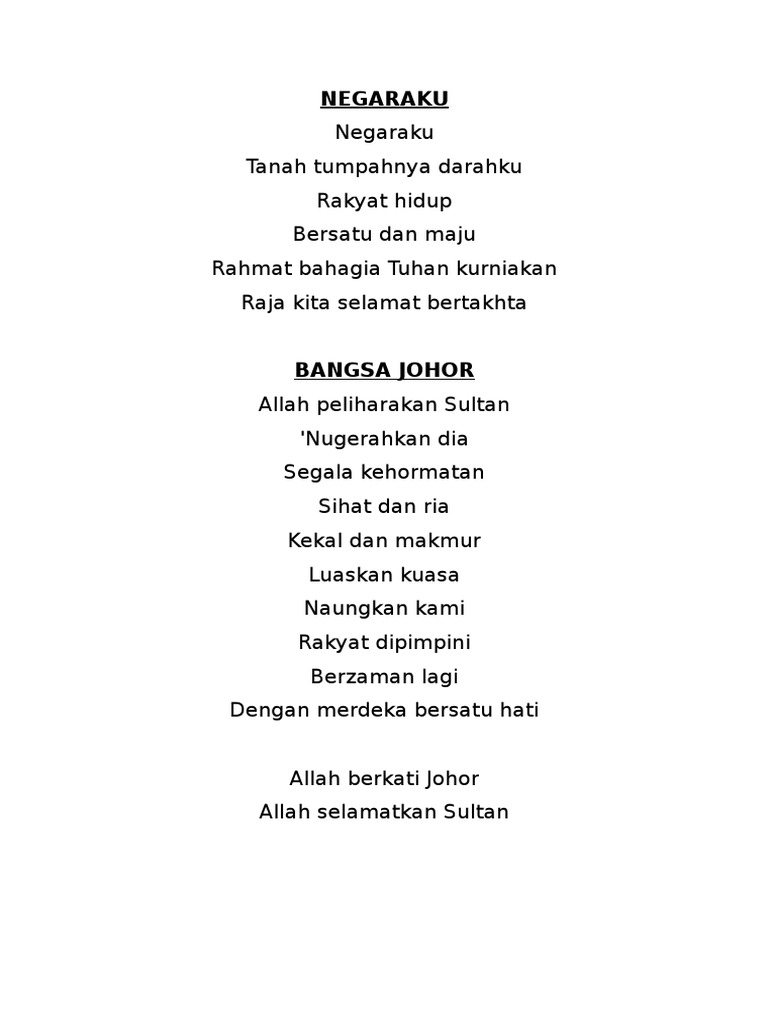 Lirik Lagu Aku Negaraku from 0.academia-photos.com Lirik aku negaraku dapatkan lagu aku negaraku dalam bentuk mp3 dan juga mp4 versi penuh, instrumental, mmo dan sebagainya dalam kotak muat turun dibawah. Aku negaraku dihati ku negaraku sememangnya negaraku maju negaraku tanah tumpah darahku. Negarakutanah tumpahnya darahku,rakyat hidupbersatu dan maju,rahmat bahagiatuhan kurniakan,raja kitaselamat bertakhta,rahmat bahagiatuhan kurniakan,raja. Download lagu negaraku dan streaming kumpulan lagu negaraku mp3 terbaru gratis dan mudah dinikmati, video klip negaraku mp4, lirik lagu negaraku full album. Video lirik lagu aku negaraku berikut adalah lirik lagu aku negaraku, lagu patriotik terbaru yang kini mesti dilagukan di. Negaraku tanah tumpahnya darahku, rakyat hidup bersatu dan maju, rahmat bahagia tuhan kurniakan, raja kita selamat bertakhta Jika ini kurang cocok silahkan pilih hasil yang ada dibawah ini. 29th sea games malaysia 2017 opening ceremony the opening ceremony was held in bukit jalil national stadium on.