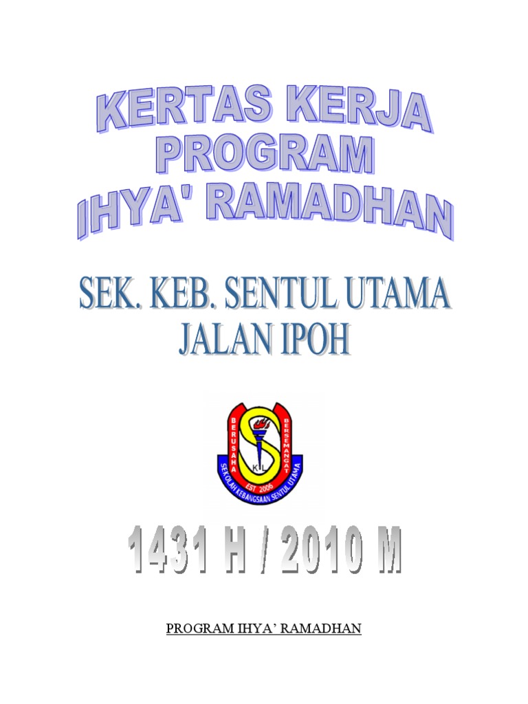 Berikut merupakan koleksi kertas kerja dan buku program ihya ramadhan yang boleh dilaksanakan di sekolah. Kerja lapangan kesan pembuangan sisa domestik geografi tingkatan 1; Sk pendidikan khas cp jalan batu. Kertas kerja hari sukan sekolah; Sekolah kebangsaan seliau 71200 rantau negeri sembilan sekolah kluster kecemerlangan ihya' ramadhan 2018m/1439h nama program ahlan ya ramadhan anjuran: