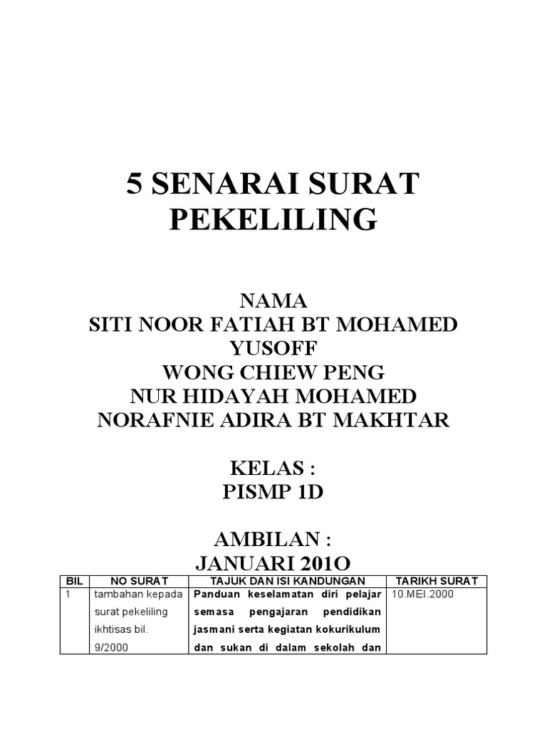 Surat pekeliling ketua setiausaha bilangan 1 tahun 2019: Official content is only at the original page which is in english or malay. If you want to learn pekeliling in english, you will find the translation here, along with other translations from malay to english. Surat pekeliling setiausaha kewangan negeri. Harapan hatiku ingin hidup bahagia.