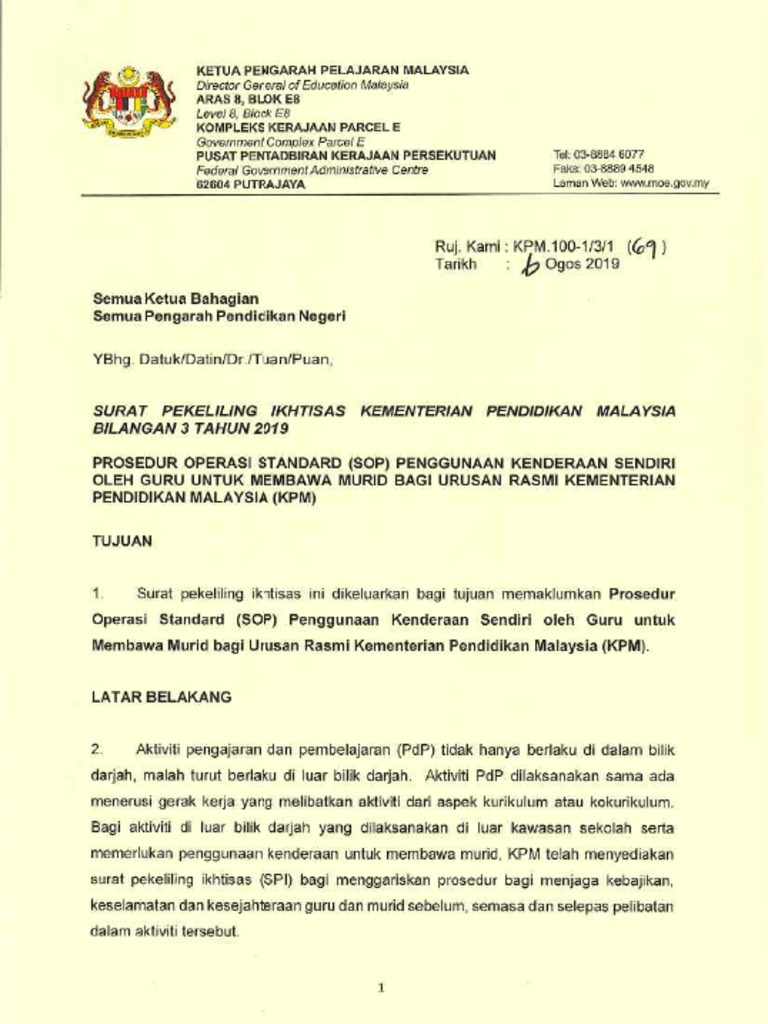 Related : Surat Pekeliling In English : Official content is only at the original page which is in english or malay..